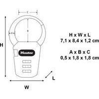 Intitulé du produit | Cadenas mousqueton à combinaison multicolor, Anse Ø: 5 mm, Nb de molettes: 3, Longueur: 71 mm, Hauteur: 2.3 cm |
