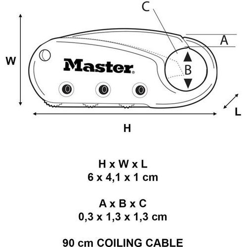 | Intitulé du produit | Cadenas pour sac à dos à combinaison programmable, Anse Ø: 3 mm, Nb de molettes: 3, Longueur: 41 mm |