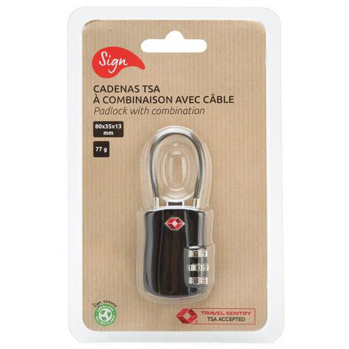 | Intitulé du produit | Cadenas TSA à combinaison, Anse Ø: 88 mm, Nb de molettes: 3 |