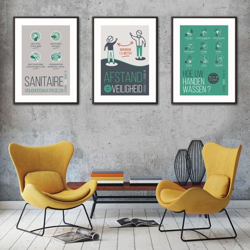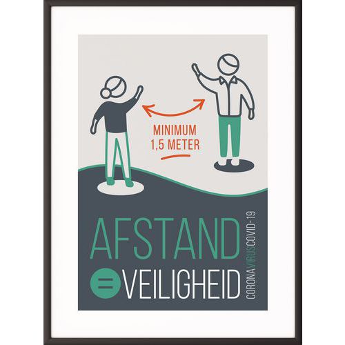 | Intitulé du produit | Cadre d'affichage texte Néerlandais, Modèle: Gardez vos distances, Format: 50X70, Matériau: Aluminium |
