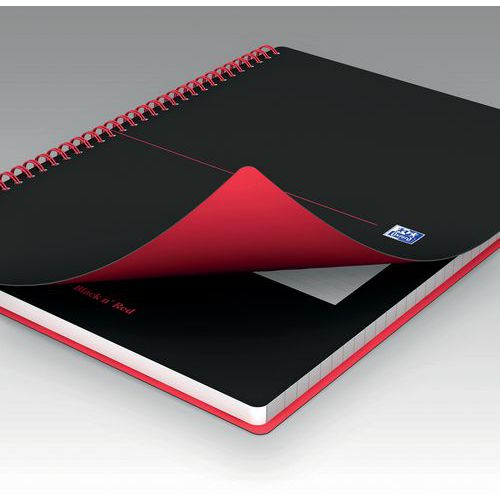 Cahier black'n red spirale a5 140 pages 90g ligné 7mm polypro - Oxford