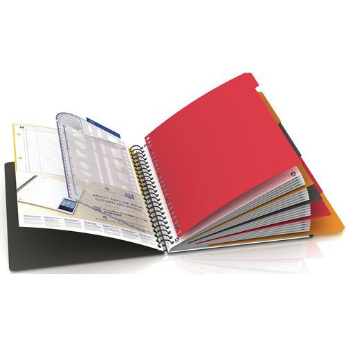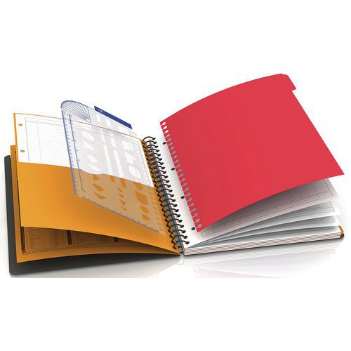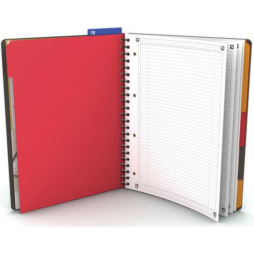 - 5 intercalaires repositionnables sont placés en début de cahier et permettent de fractionner ses notes en fonction de ses besoins.