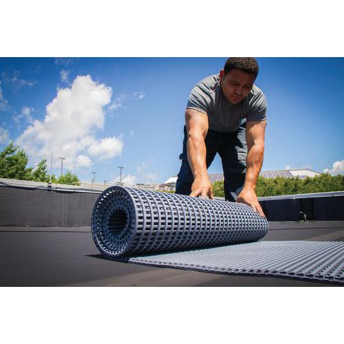 Caillebotis PVC flexible gris pour chemins techniques sur toits plats, portiques routiers et hautes passerelles.