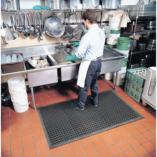 Ce tapis offre un confort de base, adapté aux milieux humides et gras.