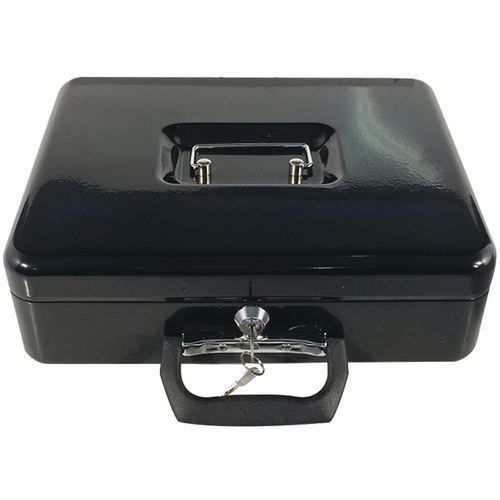 Caisse à monnaie à clé, Coloris: Noir, Largeur: 240 mm, Longueurs: 300 mm, Hauteur: 90 mm, Matériaux: Acier