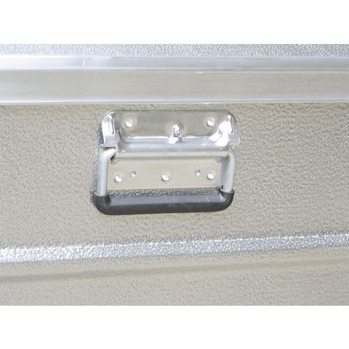 Caisse de transport aluminium esthétique et robuste. Finition arrondie des angles et profilés pour gain de place. Matériau haute résistance corrosion et fortes températures. Manipulation aisée de la caisse grâce aux poignées à ressort. Couvercle à charnière amovible avec joint en caoutchouc plein.