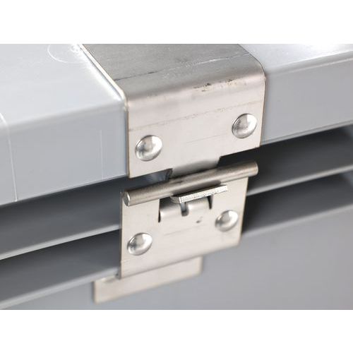 - Couvercle à charnières inox renforcées et amovibles.