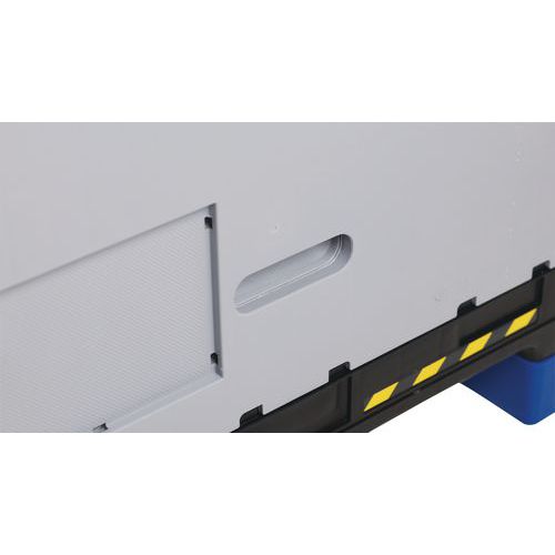 - Porte-étiquettes sur les 4 côtés et parois munies de points d’accroche pour calage.