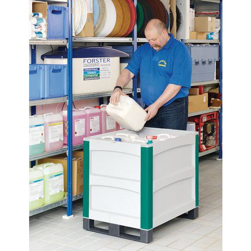 | Intitulé du produit | Caisse-palette SL86 - Parois pleines - Sur semelles - 1 côté latéral rabattable |
