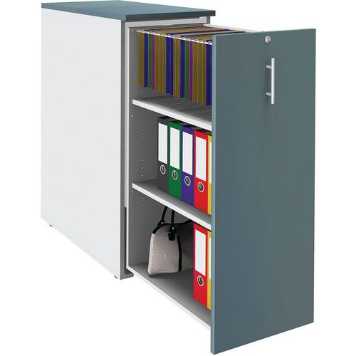 Caisson avec tiroir en structure ABS mélaminé de haute résistance. Ouverture coulissante vers l'avant. Organisateur pour dossier suspendus. 2 Roulettes pour l'ouverture de votre tiroir. Epaisseur de la tablette du dessus 25mm. Classement au feu M3,. Compatible avec l'obturateur et le plumier Tower. Livré monté.