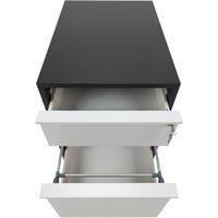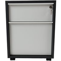 Caisson mobile Misao en mélaminé avec chants 1 mm. 2 tiroirs en panneau mélaminé dont un pour dossier suspendu. Les hauteurs utiles des tiroirs sont de 14.5 cm et 27.7 cm, pour une largeur utile de 32.5 cm. Tiroir dossier suspendu convient au dossiers A4 et foolscap. Verrouillage central sans anti bascule. Poignée fabriquée en profilé d'aluminium anodisé. Charge maximal pour chaque tiroir de 25kg. Roulettes pivotantes de 37 mm de diamètre.