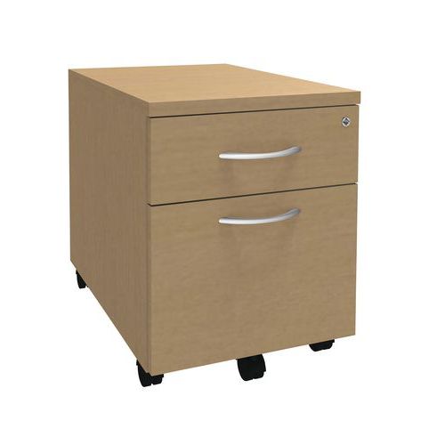 Tiroirs à ouverture sélective anti basculement Tiroirs sur glissières à galets. Serrure centralisé avec clé pliante. Plumier amovible dans tiroir haut. Modèle 2 tiroirs (dont 1 pour dossiers suspendus) avec 5ème roulette anti basculement) ou 3 tiroirs. L/H/P : 43 x 60 x 56 cm. Fabriqué en France. Livré monté.