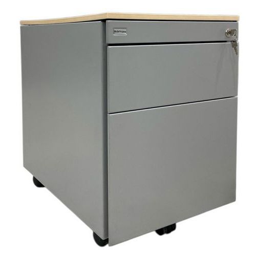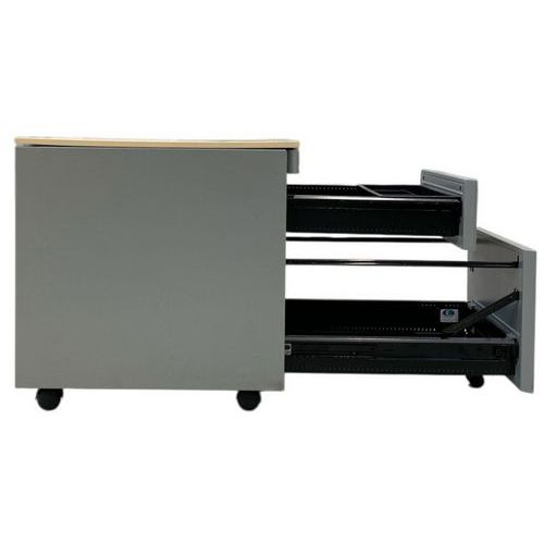 Caisson reconditionné – 2 tiroirs gris, Matériau: Mélaminé, Hauteur hors tout: 57 cm, Nb de tiroirs: 2