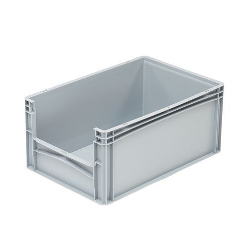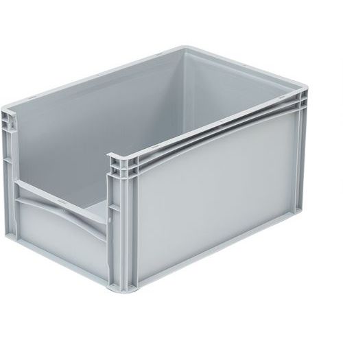 Pratique, le bac norme Europe dispose d'une ouverture pour faciliter l'enlèvement des marchandises. Convient aussi bien à la manutention qu'au transport automatique. Bac norme Europe est très stable grâce au cadre renforcé et à la construction d'angle. Facile à nettoyer grâce aux surfaces lisses. Compatible avec les denrées alimentaires.