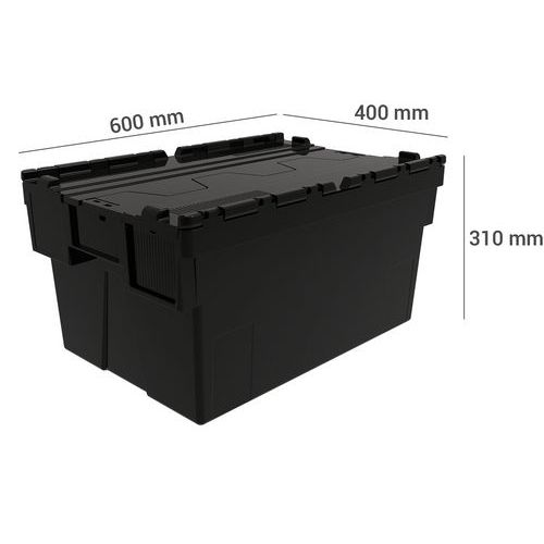Bac de transpot en plastique recyclé est optimal car il peut être empilable et emboîtable ce qui permet un gain de place important. Bac Norme Europe, celui-ci est palettisable et apporte une grande stabilité au gerbage. Résistant face aux différentes variations de températures. Pratique, le couvercle est amovible et rabattable. Fermeture inviolable possible à l'aide des scellés.