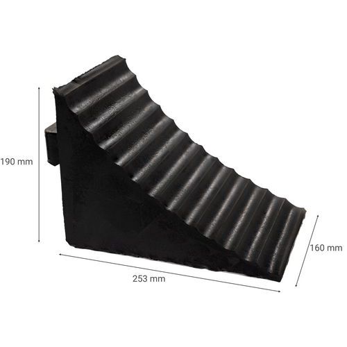 Cale roue camion en caoutchouc, Nb de pièces: 2, Coloris: Noir, Matériaux: Caoutchouc, Longueurs: 253 mm Cale roue camion en caoutchouc, Nb de pièces: 2, Coloris: Noir, Matériaux: Caoutchouc, Longueurs: 253 mm