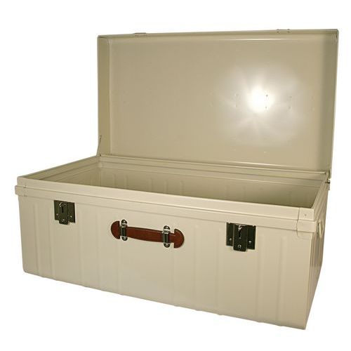 Cantine acier grande capacité avec couvercle bombé et poignée cuir, Capacité: 265 L, Hauteur hors tout: 46 cm Cantine acier grande capacité avec couvercle bombé et poignée cuir, Capacité: 265 L, Hauteur hors tout: 46 cm