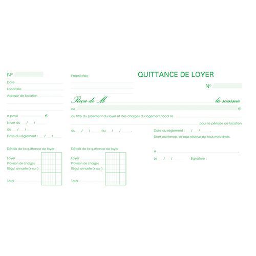 | Intitulé du produit | Carnet à souche quittance de loyer 50 feuillets 13x18,5 cm, Modèle: Carnet quittances de loyer |