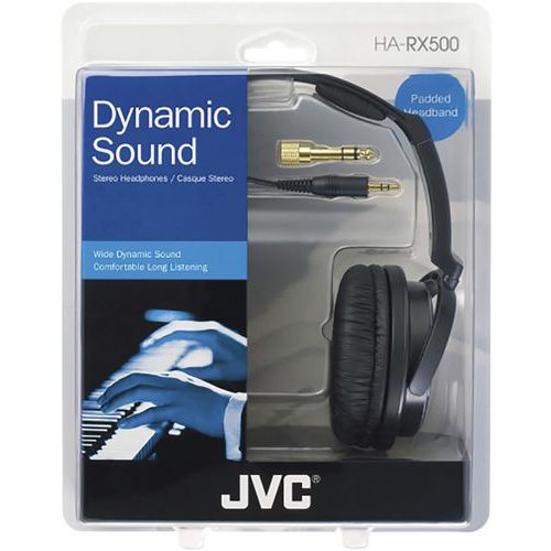 | Intitulé du produit | Casque Audio JVC HA-RX500, Type de raccordement: Jack (simple), Type de casque: Arceau, Pour enfant: non |