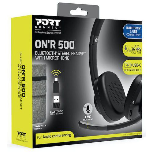 Casque binaural Bluetooth Rechargeable compatible Teams - Port Connect
