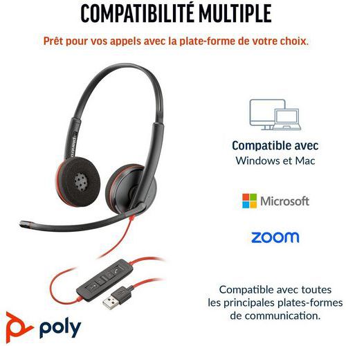 | Intitulé du produit | Casque micro monoaural bulk USB Blackwire C3220, Modèle de microphone: Micro casque |