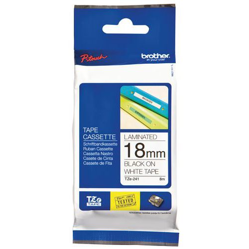 Cassette de ruban pour étiqueteuse Brother, Fond coloris: Blanc, Type de produit: TZE-241