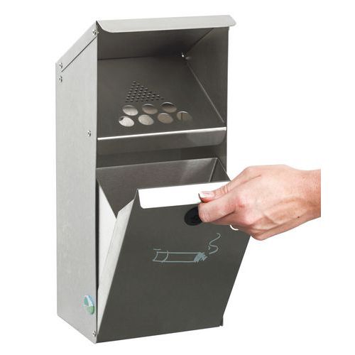 | Intitulé du produit | Cendrier mural, Cendrier capacité: 3.7 L, Coloris: Gris, Matériau: Inox, Hauteur: 41 cm, Largeur: 15 cm |