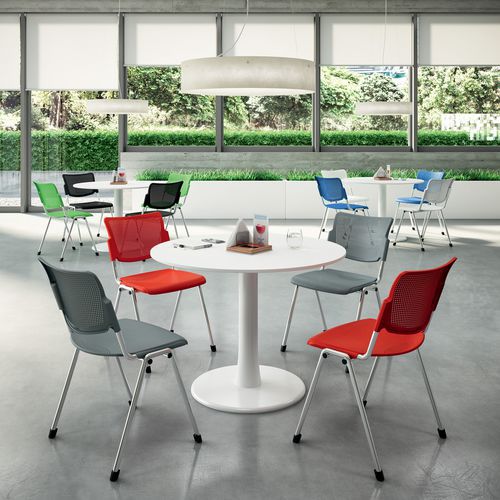 Piètement à 4 pieds stable et robuste, la chaise s'intègre facilement à tous les types d'environnements professionnels.