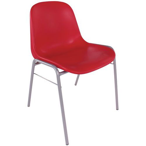 Chaise empilable par10. Patins de protection antidérapants. Monocoque robuste en polypropylène injecté. Idéale pour mettre de la couleur dans vos réunions. Supporte une charge maximum de 90 kg.