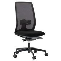 Tissu 100% polyester Trévira CS classé non feu M1pour l'assise et résille élastomère renforcé coloris noir pour le dossier.