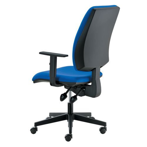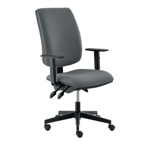 Les chaises de bureau confortables sont équipées d'une assise et d'un dossier hauts et d'un mécanisme asynchrone avec la possibilité de régler l'angle du dossier et de l'assise. Le dossier ergonomique est équipé d'un système de verrouillage réglable en hauteur.