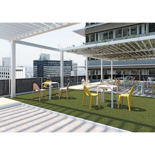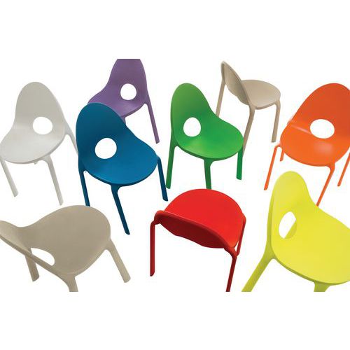 - La chaise Drop est dotée d'une ouverture placée sur son dossier qui favorise l'écoulement des eaux de pluie.