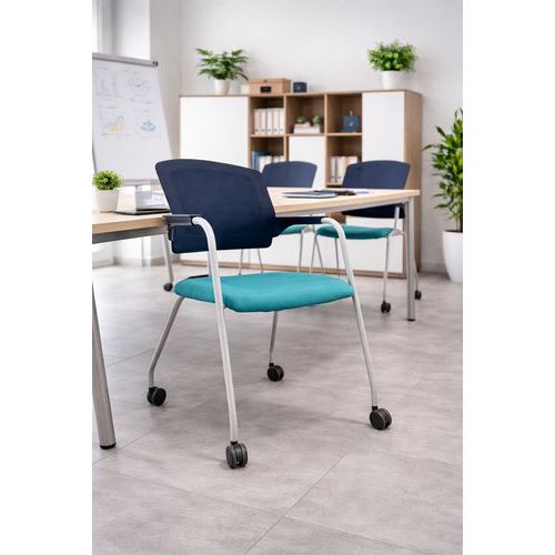 Chaise reconditionnée - Avec roulettes - Noire et Turquoise