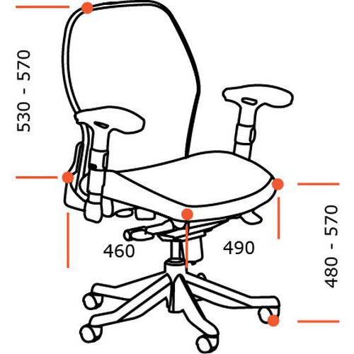 Chaise de bureau Torino avec mécanique à contact permanent.