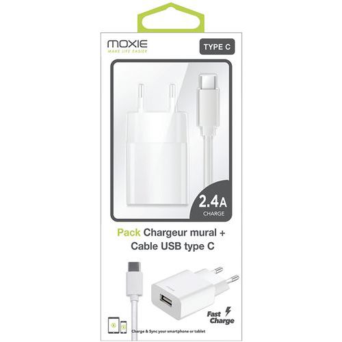 | Intitulé du produit | Chargeur secteur USB + câble 1 m charge rapide Type C, Coloris: Blanc, Longueur: 1 m |