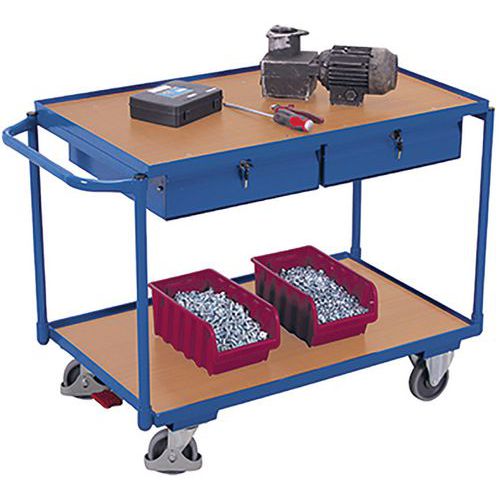 Chariot à 2 plateaux avec barre de poussée vers le bas
