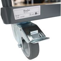 Chariot à dossier fixe grillagé avec structure robuste, châssis en acier et dossier à 1 panneau grillagé pour une durabilité accrue. Maniabilité et sécurité : Équipés de 2 roulettes pivotantes avec freins et 2 roulettes fixes pour une excellente stabilité et un contrôle précis. Adaptabilité des roues : Choisissez entre des roues à bandage en polyuréthane (PU) ou en caoutchouc pour une performance optimale sur différents types de sols.
