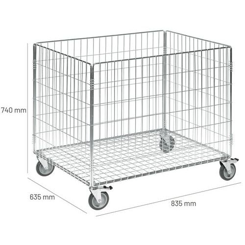 | Intitulé du produit | Chariot à maille, Roulette Ø: 100 mm, Force: 60 kg, Hauteur hors tout: 740 mm, Largeur hors tout: 635 mm |