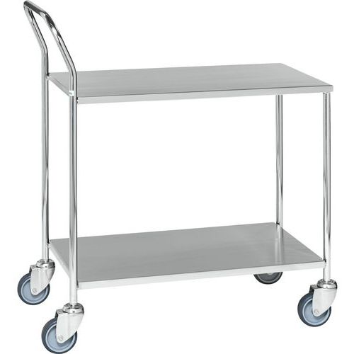 | Intitulé du produit | Chariot à plateaux, acier inoxydable, Force: 200 kg, Hauteur hors tout: 960 mm, Largeur hors tout: 430 mm |