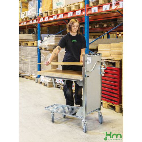 | Intitulé du produit | Chariot à plateaux ergonomique 960x530 4 roues pivotantes avec frein, Roulette Ø: 125 mm, Force: 300 kg |