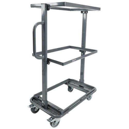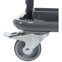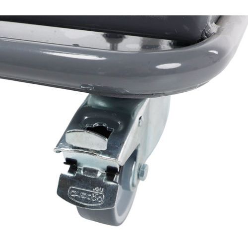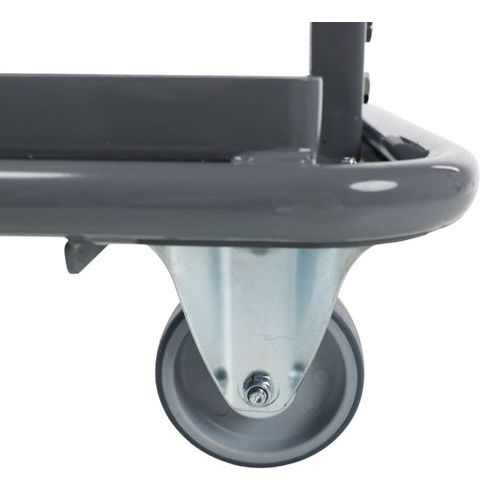 - Equipé de 2 roulettes pivotantes avec freins et de 2 roulettes fixes, il se déplace facilement et en toute sécurité dans les allées.