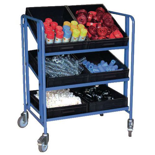 Chariot acier inclinable pour bacs - 3 à 5 plateaux - avec bacs