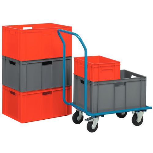 | Intitulé du produit | Chariot acier pour bacs, Force: 200 kg, Hauteur hors tout: 965 mm, Largeur hors tout: 455 mm |
