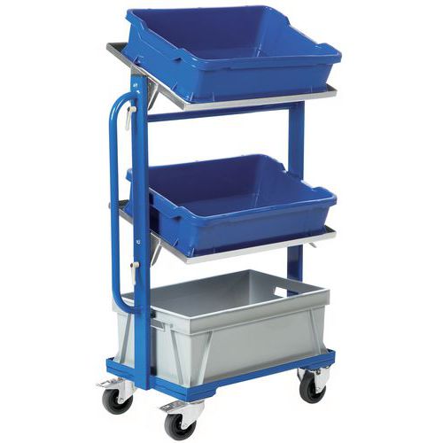 | Intitulé du produit | Chariot acier pour bacs norme Europe, Force: 150 kg, Hauteur hors tout: 1100 mm, Largeur hors tout: 415 mm |