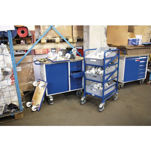 - Chariot avec bacs norme Europe par structure mécano-soudée en tube d'acier.