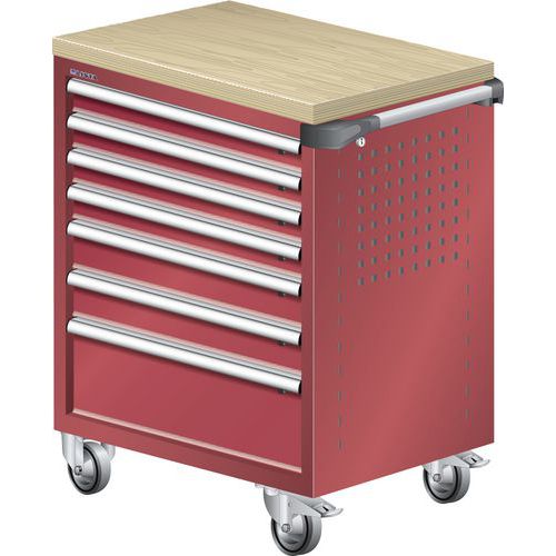 Chariot d'atelier L3627 revêtement bois multiplex, Nb de tiroirs: 7, Largeur: 89.4 cm, Profondeur: 52.5 cm