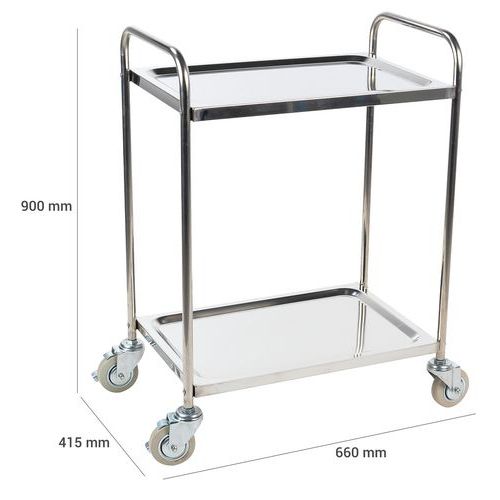 | Intitulé du produit | Chariot inox, Force: 100 kg, Hauteur hors tout: 900 mm, Largeur hors tout: 415 mm, Longueur hors tout: 660 mm |