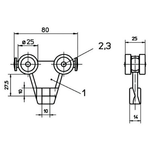 Chariot mobile, Modèle: Chariot pour guide-câble, Convient pour: Profilé en C 30 x 32 mm