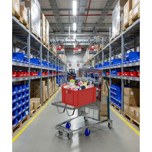 Le chariot à niveau constant zingué FIMM est conçu pour la préparation de commandes et la manutention de colis tout en réduisant les efforts au poste de travail.