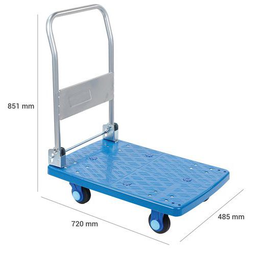 Chariot plastique dossier rabattable, Force: 200 kg, Hauteur hors tout: 851 mm, Largeur hors tout: 485 mm